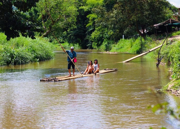 Después de un merecido descanso en medio de la naturaleza y un buen desayuno tradicional tailandés en un entorno maravilloso en las montañas, harán un divertido descenso en balsas de bambú por el río, cruzando preciosos parajes naturales arriba de estas embarcaciones típicas de la zona antes de regresar de nuevo a Chiang Mai sobre las 13h de la tarde.
