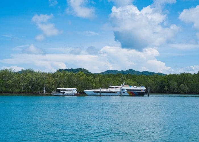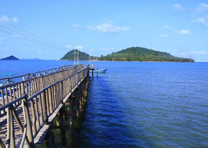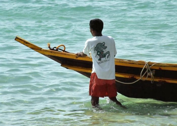 Una vez en la playa de Laem Sala, podrán subir un barco para cruzar hasta el punto de inicio de la caminata.