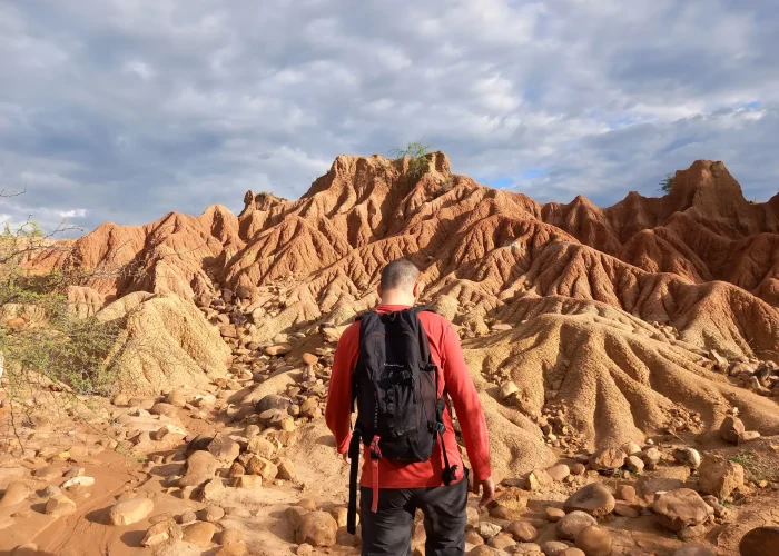 Sumérgete en el paisaje surrealista del desierto de la Tatacoa, con sus formaciones rocosas y su cielo estrellado, un lugar que te dejará sin aliento y te invitará a contemplar la inmensidad del universo.